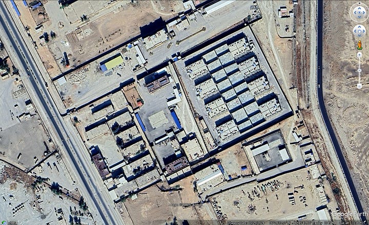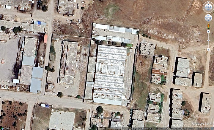 Since the capture of the Islamic State’s last piece of controlled territory in early 2019, the SDF/DAANES has maintained a number of prisons holding approximately 9,000 detained Islamic State fighters. These include Panorama/al-Sina‘ah in al-Hasakah city, al-Aqtan outside al-Raqqah, and the Derik/al-Malikiyah Central Prison, and the Sini or Kum prison outside al-Shaddadi (see in order below). I’ve been told several other smaller facilities located in rural al-Hasakah have also held IS fighters in the past, though its unclear if they currently do.