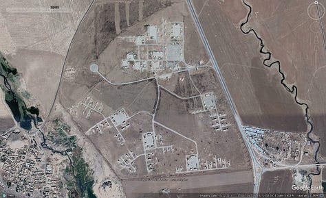 While looking into former Syrian regime bases in northeast Syria I stumbled across this facility that clearly belongs to one of the international Coalition members - either US, UK, or France - with ground forces in northeast Syria (note the beige tent seen at other bases). For a list of known US bases prior to this years partial downsizing, see here.