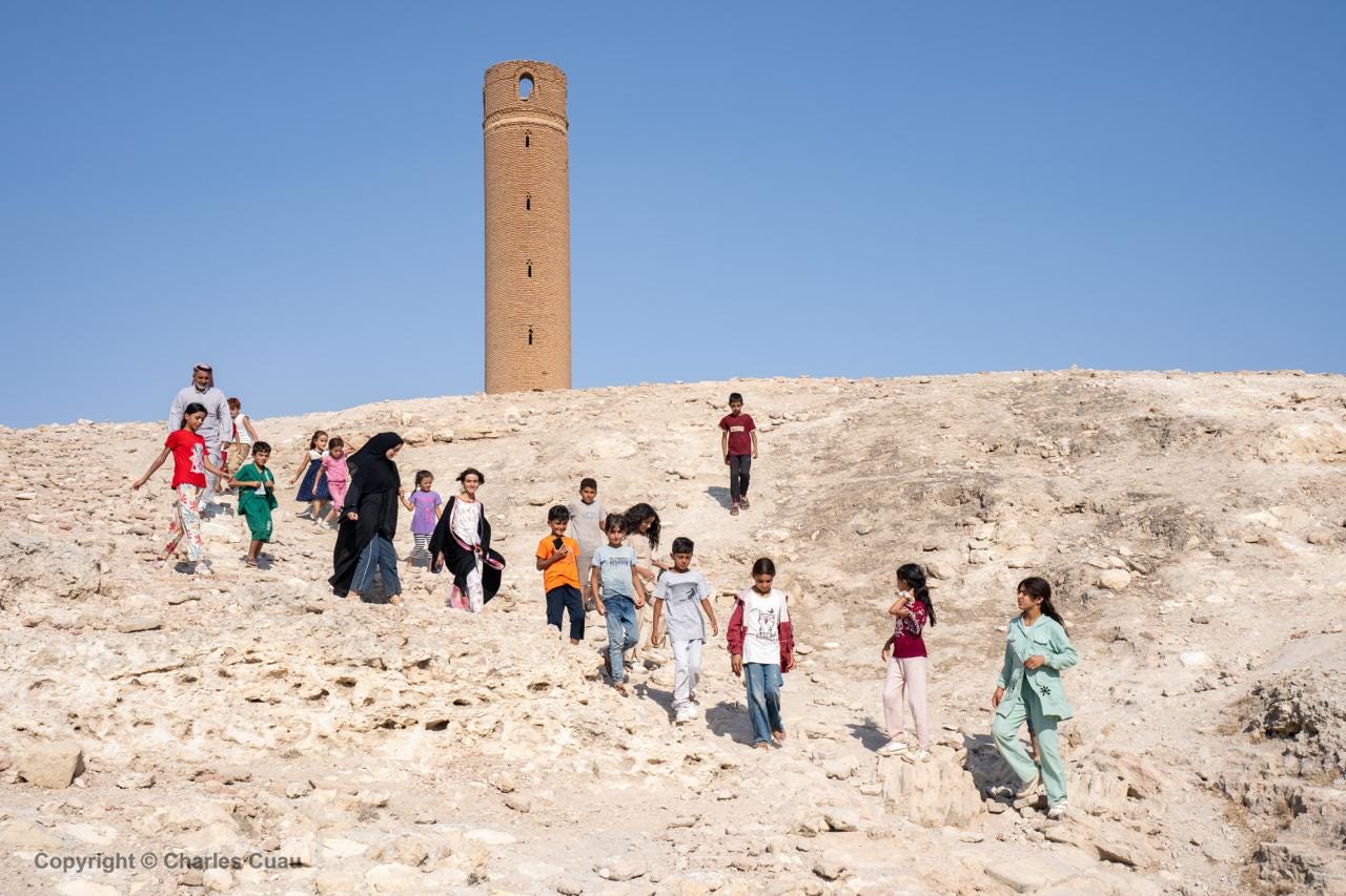 Kids visiting Qal‘at Ja‘bat on the SDF-controlled left bank
