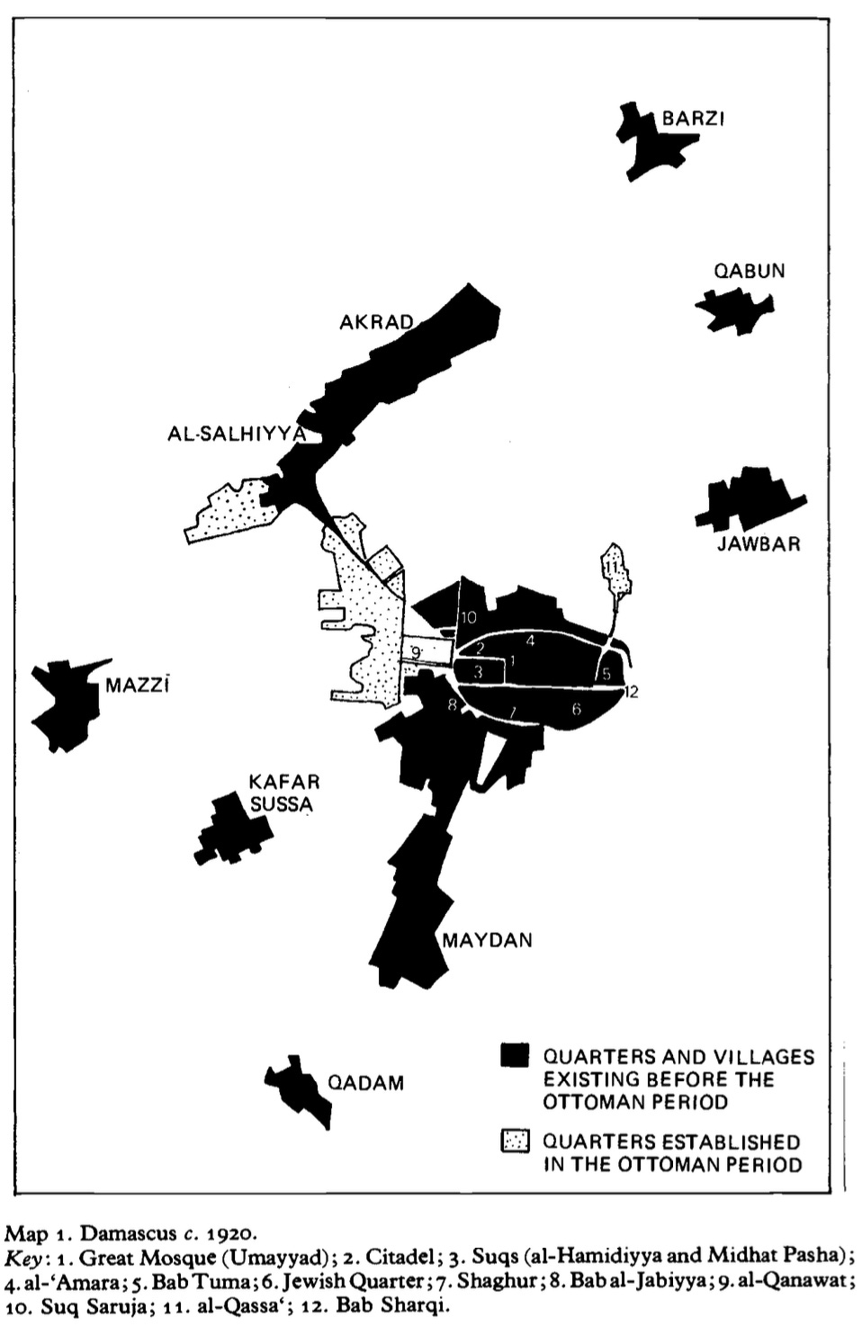 In response to the 1860 massacres in Damascus, in which mobs stoked to some degree by political elite slaughtered thousands of Christians in the Bab Touma neighborhood, Istanbul seized the opportunity to disempower the local notables. Prior to 1860 this consisted of the ‘uluma’ - the clerical establishment, the aghawat - janissary chiefs (many actually being Kurdish tribal leaders deployed from modern day Turkey), and an assortment of tax farmers and merchants, who either held seats in the local majlis or wielded significant economic power (ie. Aghawat dominance of the grain and livestock trade). What emerged after was what Khoury terms the “landowning-bureaucratic class,” comprising families of the pre-1860 and newcomers shaped by the new structural reality…
